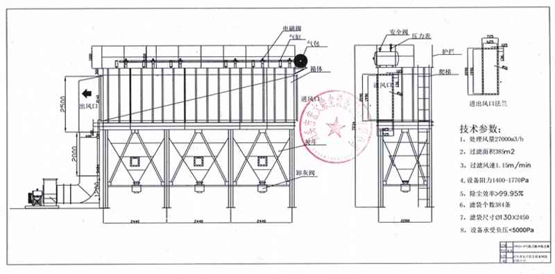 【氣箱式脈沖袋式收塵器安裝示意圖】: